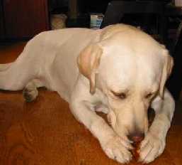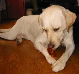 | ラブは特に買ってきたばかりのひづめが大好きです。1時間でもず〜っと噛みっぱなしです。ひづめは部屋が臭くなるのでスモークされてるものを与えてます。 | ||