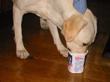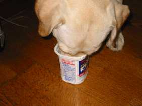 | ラブはおもしろくて、「ヨーグルト」って言っただけで、すぐ自分のゲージに入ります。 そしてもらえるのを、よだれタラタラで待ってます |
