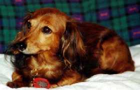 サリー | ♀ | ミニチュアロングヘアーダックスフント | 夏 | 2歳半 | 甘えん坊で、すぐひっくり返って、 「遊ぼうと」なつく |